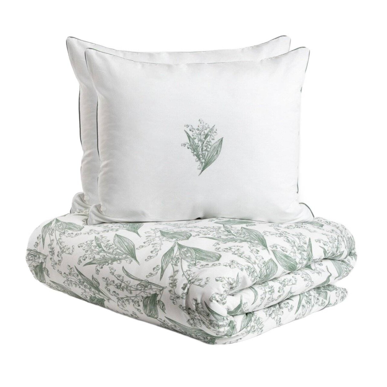 Lenjerie de pat dubla Conwallie, Homla, 3 piese, 160x200 cm, bumbac, alb/verde