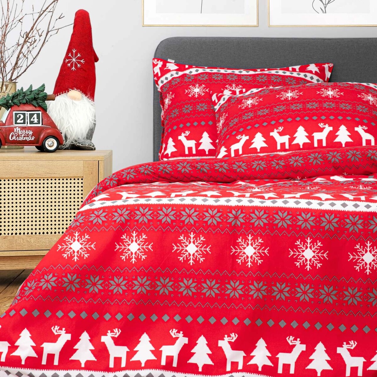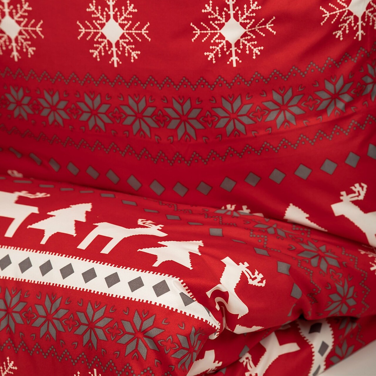 Creati o atmosfera unica in dormitorul dumneavoastra cu lenjeria de pat RENNA. Cu motive festive aceasta lenjerie de pat aduce spiritul Craciunului direct in dormitor, oferind confort si o atmosfera plina de veselie. Este, de asemenea, o optiune excelenta pentru un cadou practic.