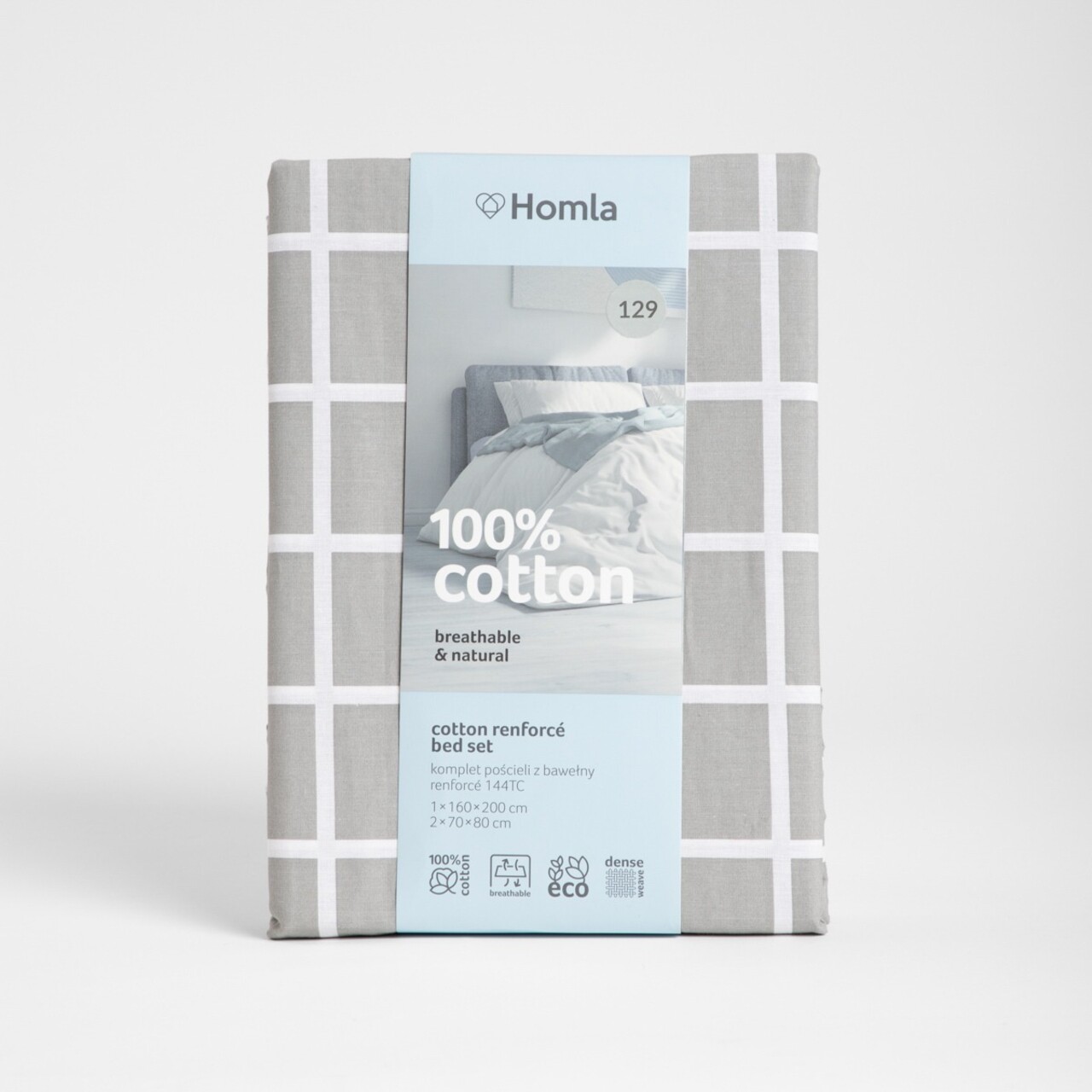 Setul REYES este format dintr-o husa de pilota cu dimensiunea 200x220 cm si doua fete de perna cu dimensiunea 70x80 cm.