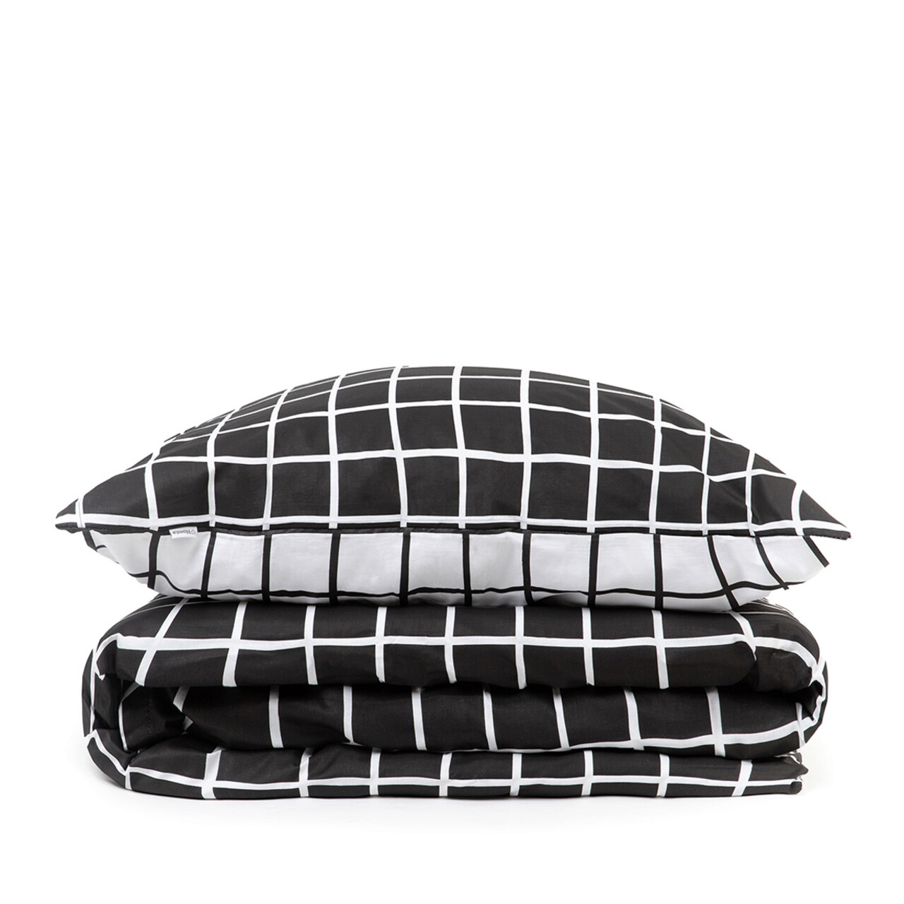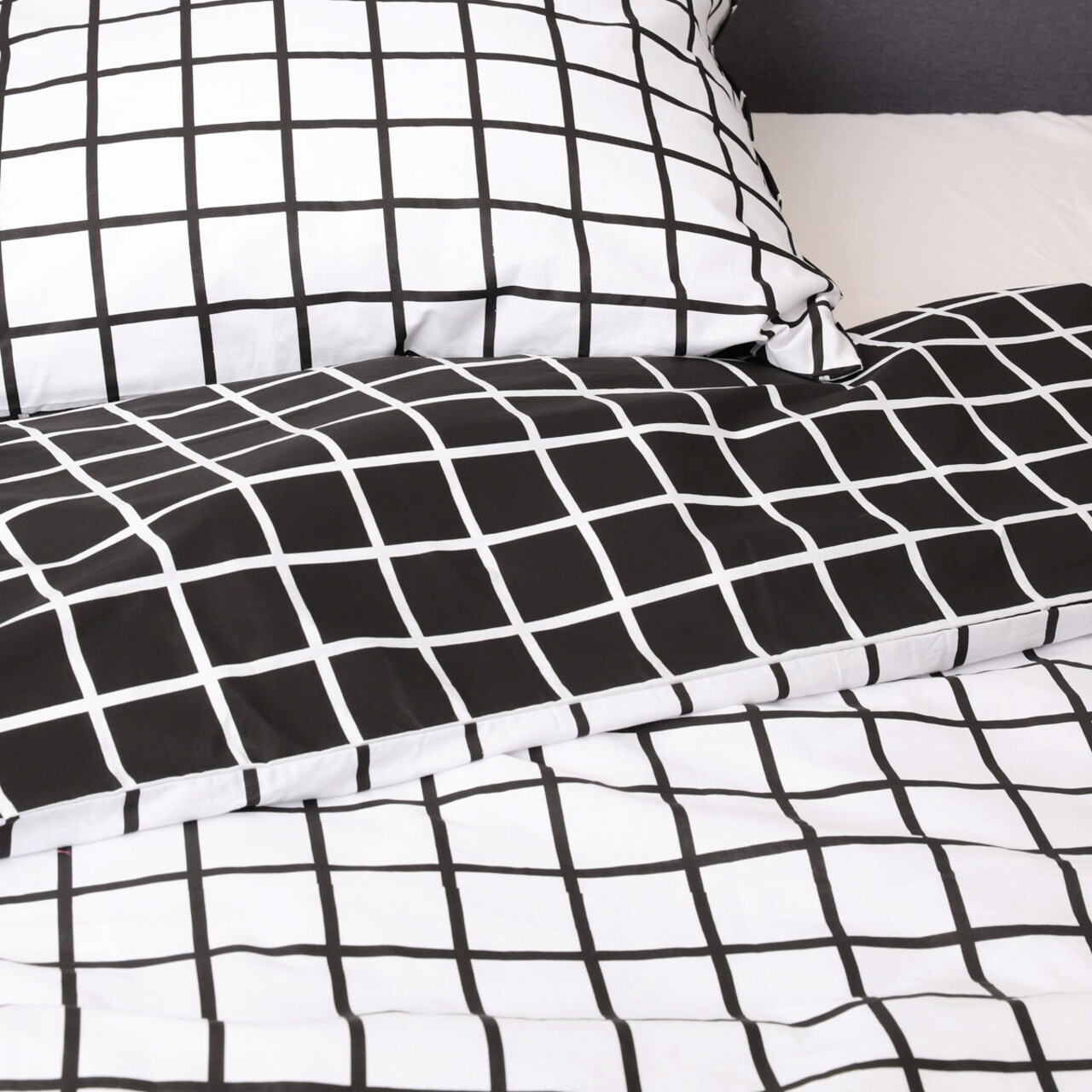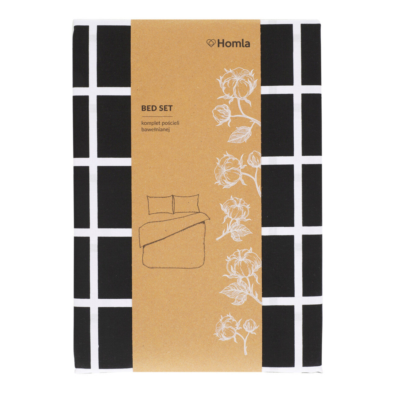 Lenjerie de pat King Size, Reyes, Homla, 3 piese, 200x220 cm, bumbac, alb/negru