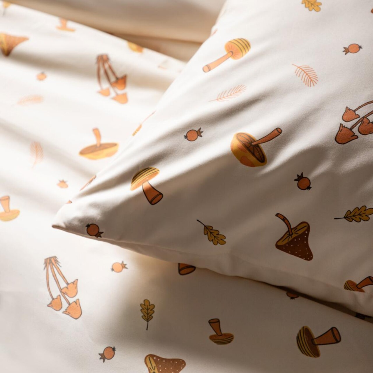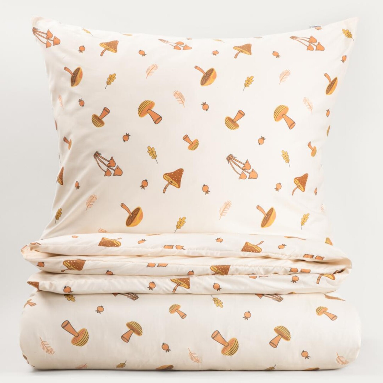 Setul SHROOM este format dintr-o husa de pilota cu dimensiunea 200x220 cm si doua fete de perna cu dimensiunea 70x80 cm.