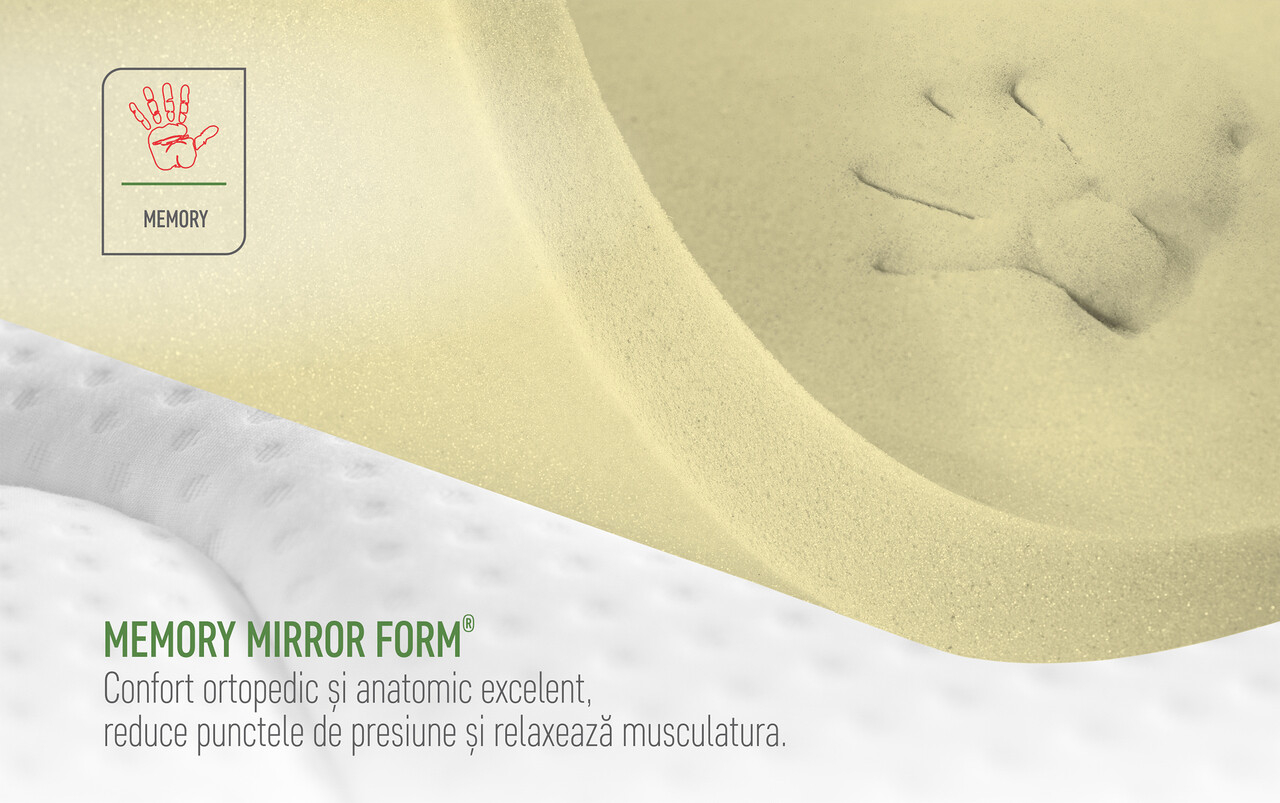 Tehnologia avansata a sistemului de Arcuri 7Z Green Pocket® impreuna cu cea a stratului de Memory Mirror Form® asigura un somn fara propagarea miscarilor partenerului.