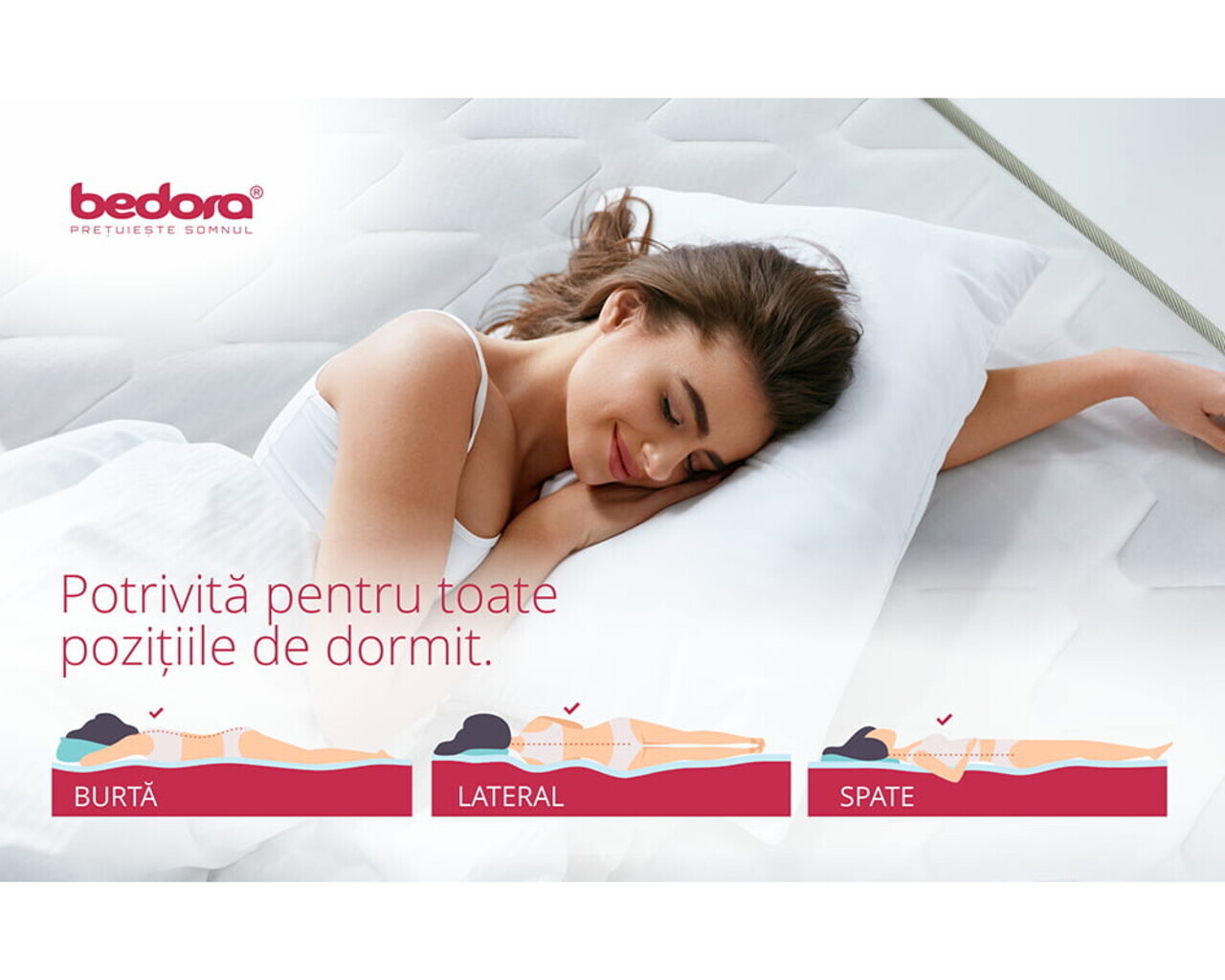 Indicata pentru toate pozitiile de somn: pe spate, pe lateral si pe burta