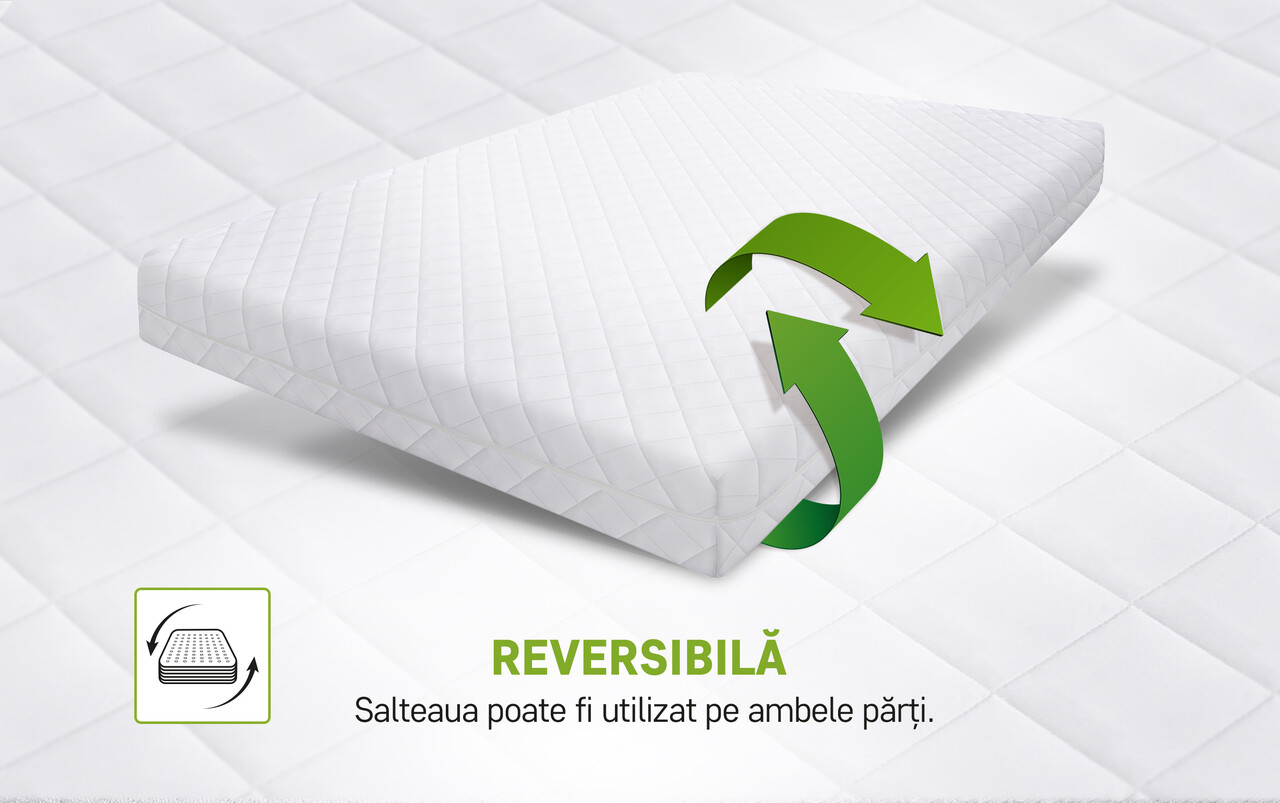 Salteaua este recomandata pentru toate pozitiile de dormit: pe spate, pe lateral sau pe stomac, oferind suport corect si sustinere echilibrata indiferent de preferintele tale.