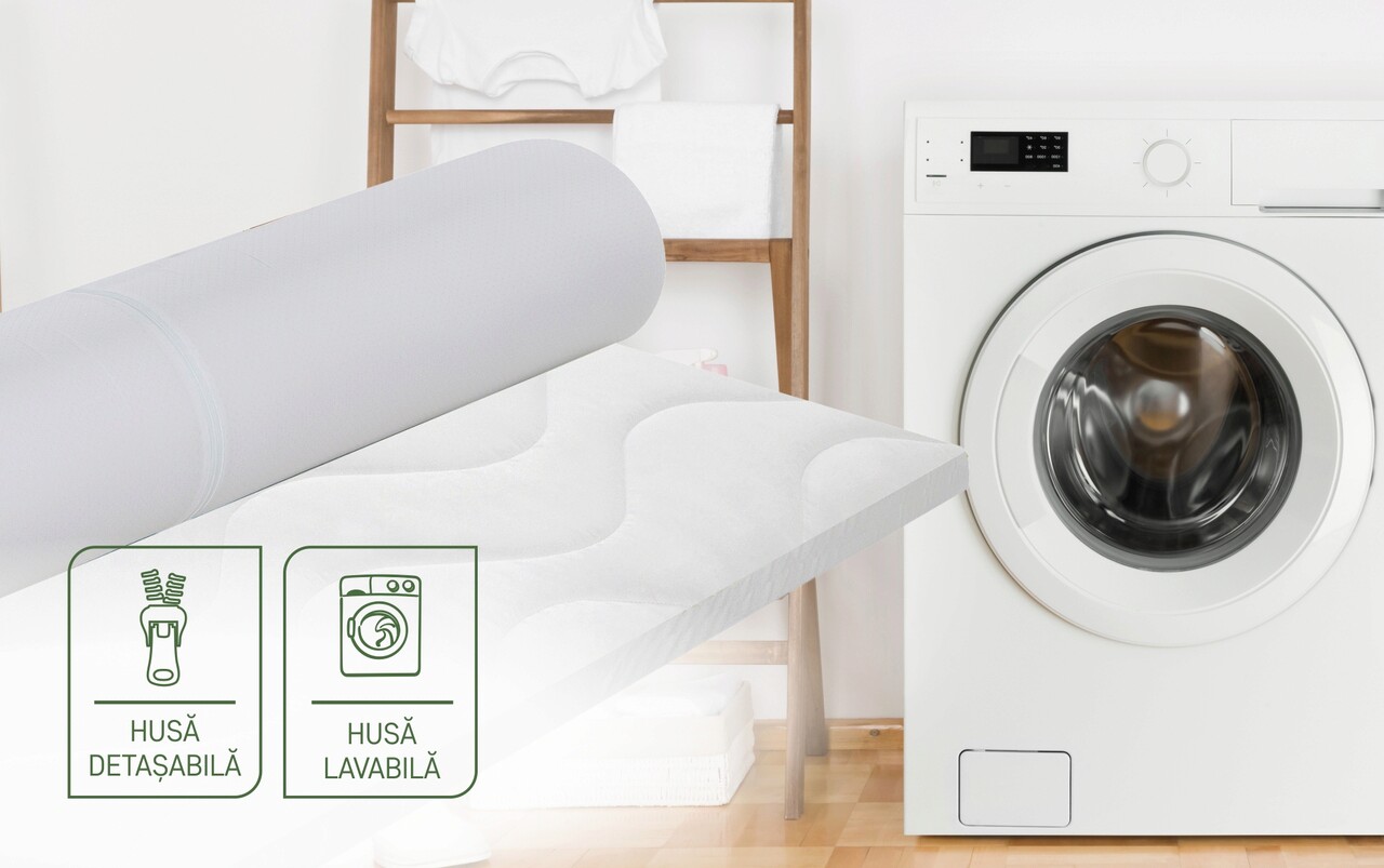 - utilizarea unei protectii suplimentare protejeaza tesatura husei de accidente nedorite si prelungeste durata de utilizare a topper-ului.